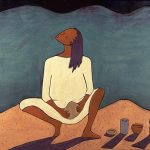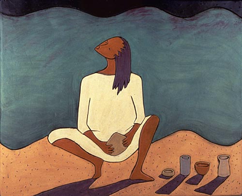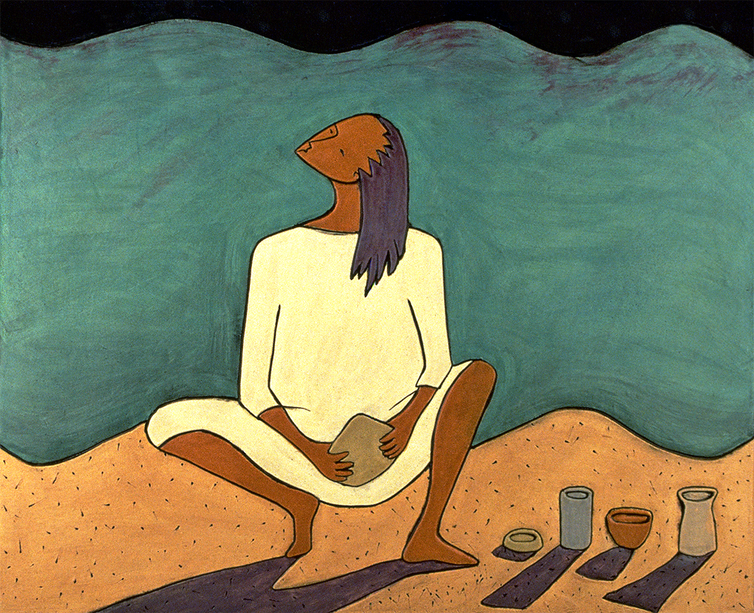 “The Potter” 1991, Clay tile, 13″ x 16″
